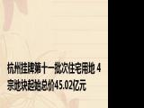 【杭州挂牌第十一批次住宅用地 4宗地块起始总价45 02亿元】,杭州市区7月30日发布2024年第十一批住宅用地挂牌公告,共4宗,出让土地面积15 浏览全文>>