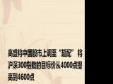 【高盛将中国股市上调至“超配” 将沪深300指数的目标价从4000点提高到4600点】,高盛在最新的报告中将中国股市上调至“超配”,高盛认为 浏览全文>>