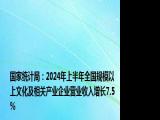 【国家统计局:2024年上半年全国规模以上文化及相关产业企业营业收入增长7 5%】,国家统计局数据显示,据对全国7 7万家规模以上文化及相关 浏览全文>>