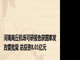 【河南商丘机场可研报告获国家发改委批复 总投资8 01亿元】,商丘机场工程可行性研究报告已获国家发展改革委批复。至此,该项目前期报批工 浏览全文>>