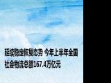 【延续稳定恢复态势 今年上半年全国社会物流总额167 4万亿元】,中国物流与采购联合会今天(30日)公布今年上半年物流运行数据。数据显示 浏览全文>>