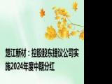 【楚江新材:控股股东提议公司实施2024年度中期分红】,楚江新材公告,公司控股股东楚江集团提议制定并实施2024年度中期现金分红方案,建议 浏览全文>>