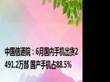 快科技7月29日消息,中国信通院今天公布了2024年6月国内手机市场运行分析报告。其中显示,2024年6月国内市场手机出货量2491 2万部,同比增 浏览全文>>