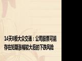 【14天8板大众交通:公司股票可能存在短期涨幅较大后的下跌风险】,大众交通发布股价异动公告,截至7月26日,公司股票连续30个交易日内收盘 浏览全文>>
