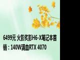 快科技7月29日消息,火影炙影H6-X笔记本将于今日开启首销,采用i7-12800HX处理器+RTX4070显卡,首发价6499元。据介绍,火影炙影 H6-X搭载 浏览全文>>