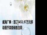 【威海广泰:签订5451 97万元移动医疗装备销售合同】,威海广泰公告,近日,公司收到全资子公司威海广泰医疗科技有限公司与吉林大学中日联 浏览全文>>