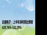 【达瑞电子:上半年净利同比预增429 76%-532 29%】,达瑞电子公告,预计上半年净利9300万元–1 11亿元,同比增长429 76%-532 29%。报告期内 浏览全文>>