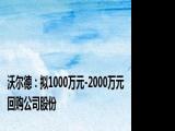 【沃尔德:拟1000万元-2000万元回购公司股份】,沃尔德公告,拟1000万元-2000万元回购公司股份;回购价格不超过23元 股(含);回购股份用于 浏览全文>>