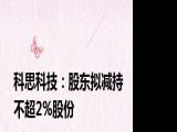 【科思科技:股东拟减持不超2%股份】,科思科技公告,持股5%以上股东、核心技术人员梁宏建拟减持不超过2%的股份。浏览全文>>