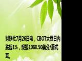 ,CBOT大豆日内跌超1%,现报1068 50美分 蒲式耳。浏览全文>>
