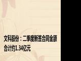 【文科股份:二季度新签合同金额合计约1 34亿元】,文科股份公告,2024年第二季度(4-6月)新签合同金额合计约1 34亿元。浏览全文>>