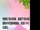,美团于7月26日回购350万股B类股份,斥资3 742亿港元。浏览全文>>