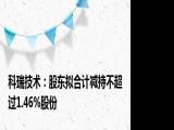 【科瑞技术:股东拟合计减持不超过1 46%股份】,科瑞技术公告,公司股东华苗投资、鹰诺投资拟合计减持不超过1 46%股份。浏览全文>>