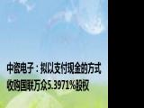 【中瓷电子:拟以支付现金的方式收购国联万众5 3971%股权】,中瓷电子公告,公司拟以支付现金的方式收购国联之芯持有的国联万众5 3971%股权 浏览全文>>