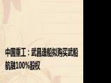 【中国重工:武昌造船拟购买武船航融100%股权】,中国重工公告,公司全资子公司武昌船舶重工集团有限公司(“武昌造船”)拟以自有资金10 44 浏览全文>>