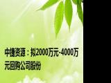 【中捷资源:拟2000万元-4000万元回购公司股份】,中捷资源公告,拟2000万元-4000万元回购公司股份,回购价格不超过2 96元 股(含),本次 浏览全文>>