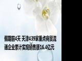 【假期前4天 天津439家重点商贸流通企业累计实现销售额16 4亿元】,国庆假期,天津市商务局监测数据显示,假期前4天,439家重点商贸流通企 浏览全文>>