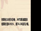 ,WTI原油期货结算价涨0 91%,报74 38美元 桶。浏览全文>>