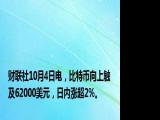 ,比特币向上触及62000美元,日内涨超2%。浏览全文>>