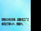 ,美国8月工厂订单环比下降0 2%,预期0%。浏览全文>>