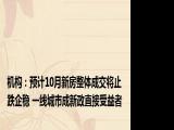 【机构:预计10月新房整体成交将止跌企稳 一线城市成新政直接受益者】,克而瑞地产研究中心发布报告称,因9月末中央到地方利好频频,先是 浏览全文>>
