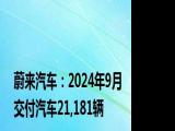【蔚来汽车:2024年9月交付汽车21,181辆】,据蔚来汽车公告,2024年9月交付汽车21,181辆,同比增长35 4%。截至2024年9月的三个月,交付了汽 浏览全文>>