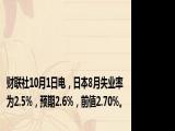 ,日本8月失业率为2 5%,预期2 6%,前值2 70%。浏览全文>>