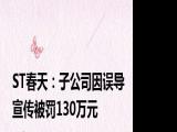 【ST春天:子公司因误导宣传被罚130万元】,ST春天公告,公司子公司西藏春天酒业有限公司于近日收到西藏自治区市场监督管理局的《行政处罚 浏览全文>>