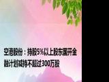 【空港股份:持股5%以上股东国开金融计划减持不超过300万股】,空港股份公告,公司持股5%以上股东国开金融计划自本公告披露之日起15个交易 浏览全文>>