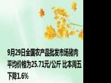 【9月29日全国农产品批发市场猪肉平均价格为25 71元 公斤 比本周五下降1 6%】,据农业农村部监测,9月29日“农产品批发价格200指数”为134 浏览全文>>