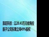【凯旺科技:以20 43万元收购控股子公司东莞立鸿49%股权】,凯旺科技公告,公司与原股东李季桦签署了股权转让协议,以自有资金人民币20 43 浏览全文>>