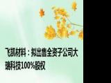 【飞凯材料:拟出售全资子公司大瑞科技100%股权】,飞凯材料公告,公司拟向昇贸科技出售全资子公司大瑞科技100%股权。2024年9月27日,公司 浏览全文>>