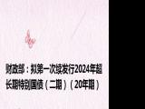 【财政部:拟第一次续发行2024年超长期特别国债(二期)(20年期)】,财政部公告,拟第一次续发行2024年超长期特别国债(二期)(20年期) 浏览全文>>