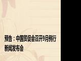 【预告:中国贸促会召开9月例行新闻发布会】,据中国网消息,中国贸促会定于2024年9月29日10:00-11:00召开9月例行新闻发布会,中国贸促会新 浏览全文>>