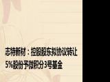【志特新材:控股股东拟协议转让5%股份予微积分3号基金】,志特新材公告,公司控股股东珠海凯越高科技产业投资有限公司与微积分3号私募证券 浏览全文>>