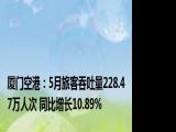 【厦门空港:5月旅客吞吐量228 47万人次 同比增长10 89%】,厦门空港公告,5月飞机起降15987架次,同比增长1 01%;旅客吞吐量228 47万人次 浏览全文>>
