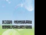 【浙江证监局:对杭州悦易私募基金管理有限公司采取出具警示函措施】,浙江证监局发布关于对杭州悦易私募基金管理有限公司采取出具警示函措 浏览全文>>