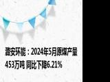【潞安环能:2024年5月原煤产量453万吨 同比下降6 21%】,潞安环能公告,2024年5月原煤产量453万吨,同比下降6 21%;商品煤销量404万吨,同比下降21 71%。浏览全文>>