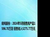 【晓鸣股份:2024年5月销售鸡产品1596 78万羽 销售收入5275 77万元】,晓鸣股份公告,2024年5月销售鸡产品1596 78万羽,销售收入5275 77万 浏览全文>>