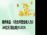 【南侨食品:5月合并营业收入为2 64亿元 同比减少3 01%】,南侨食品公告,公司2024年5月合并营业收入为人民币2 64亿元,同比减少3 01%。浏览全文>>