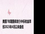 【美国7年期国债发行中标收益率创2023年4月以来最低】,美国财政部发行440亿美元7年期国债,中标收益率报3 668%,而美东时间下午1点投标截 浏览全文>>