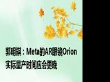 【郭明錤:Meta的AR眼镜Orion实际量产时间应会更晚】,知名分析师郭明錤指出,Meta Platforms内部的产品路线显示,AR眼镜Orion最快在2027 浏览全文>>
