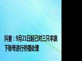 【抖音:9月21日起已对三只羊旗下账号进行停播处理】,抖音电商安全中心9月26日发布公告称,根据相关法律法规及《抖音电商创作者管理总则》 浏览全文>>