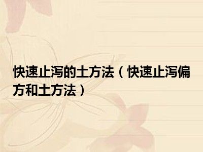 大家好,我是小前,我来为大家解答以上问题。快速止泻的土方法,快速止泻偏方和土方法很多人还不知道,现在让我们一起来看看吧!