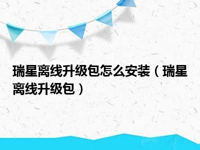 瑞星离线升级包怎么安装(瑞星离线升级包)