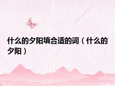 大家好,我是小前,我来为大家解答以上问题。什么的夕阳填合适的词,什么的夕阳很多人还不知道,现在让我们一起来看看吧!