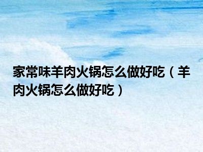 家常味羊肉火锅怎么做好吃(羊肉火锅怎么做好吃)