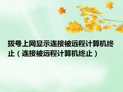 拨号上网显示连接被远程计算机终止(连接被远程计算机终止)