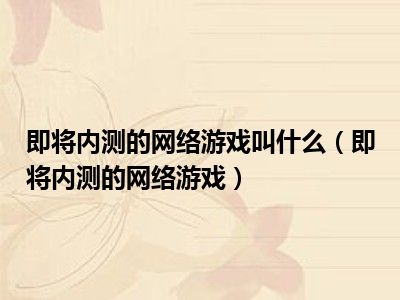 即将内测的网络游戏叫什么(即将内测的网络游戏)