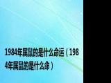 大家好,我是小前,我来为大家解答以上问题。1984年属鼠的是什么命运,1984年属鼠的是什么命很多人还不知道,现在让我们一起来看看吧!1、 浏览全文>>